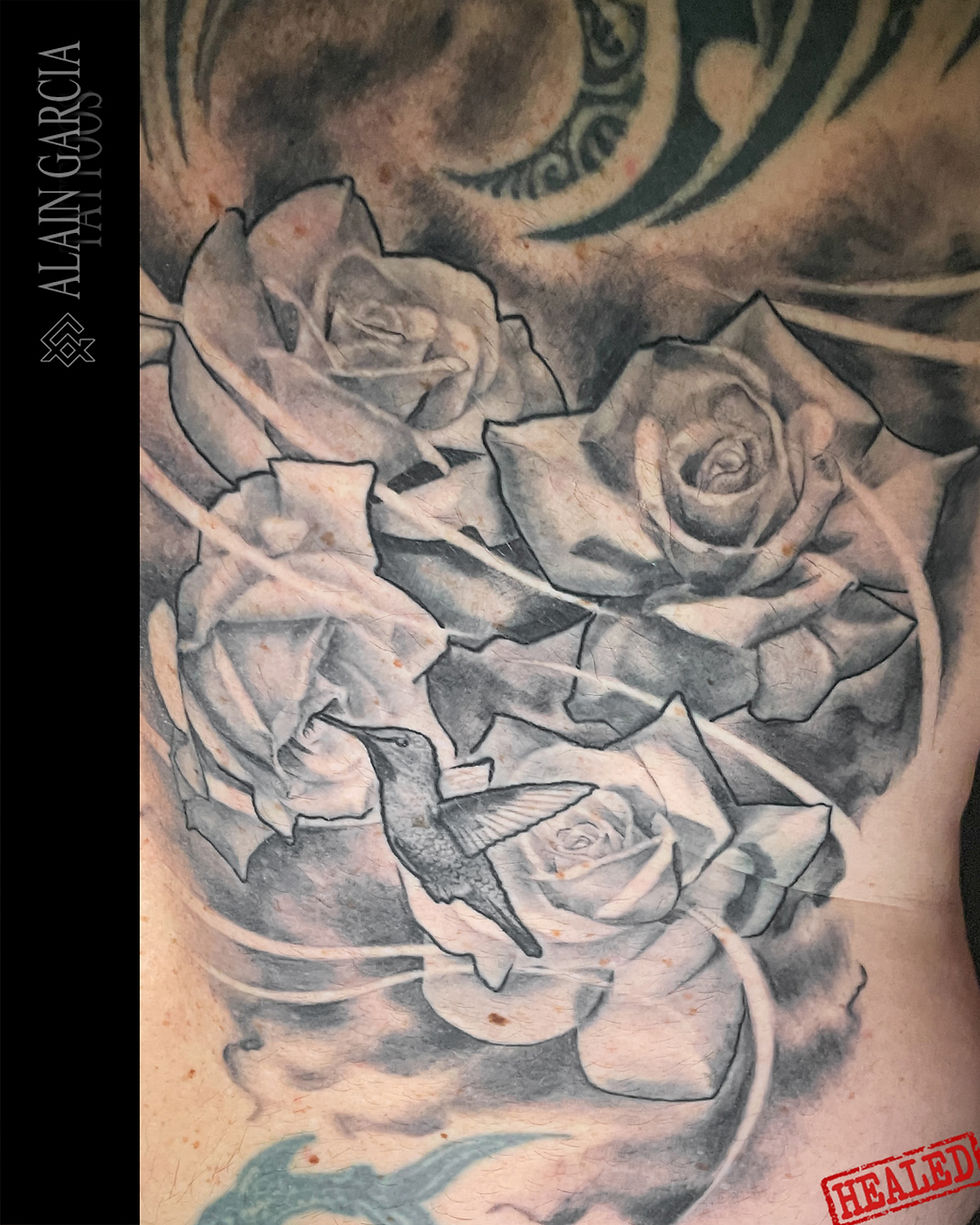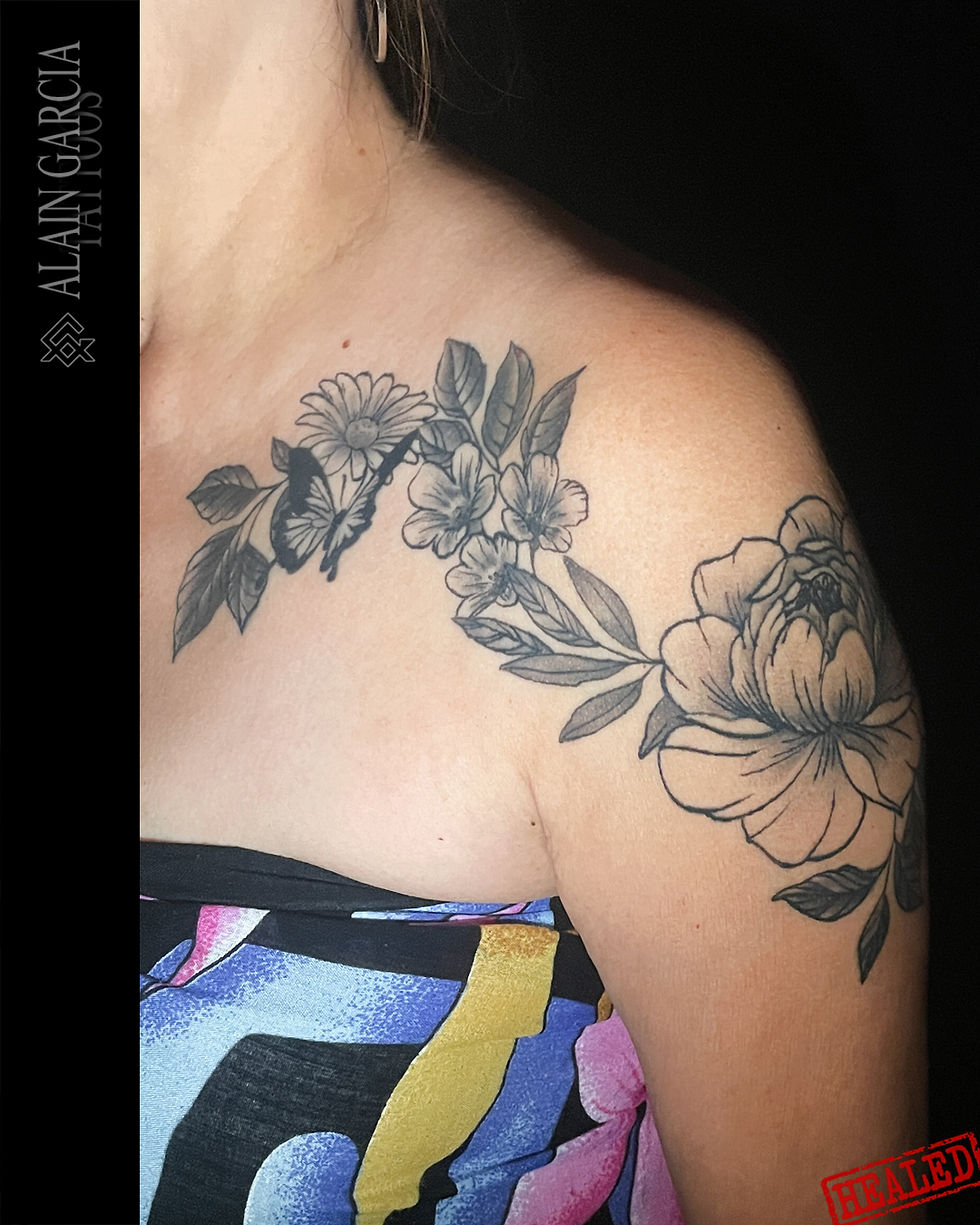 ALAIN GARCIA TATTOOS : Tatoueur, Divers Styles de Tatouage. Floral, Ornemental, Cartoon, Manga... Design personnalisé et unique, style spécialisé noir et gris design unique tatouage noumea centre ville